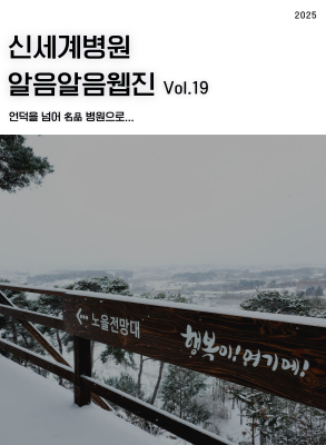 MENU 신세계효병원 이사장 인사말 병원연혁 미션 & 비젼 HI 병원시설안내 의료진소개 진료안내 진료시간 & 오시는길 입ㆍ퇴원안내 비급여 품목 수수료 원내 전화번호 병동안내 중증 발달장애 나누리발달센터장 인사말 나누리발달센터 이용 행동평가 치료프로그램 나누리학교 정신건강 노인요양 질향상 환자안전 감염관리 커뮤니티 병원소식 갤러리 소식지 자원봉사 채용소식 알음알음후원회 MENU 홈 커뮤니티 소식지 소식지 2026 알음알음 20호 2025 알음알음 19호 2024 알음알음 18호 2023 알음알음 17호 2022 알음알음 16호 2021 알음알음 15호 2021 알음알음 14호 2021 알음알음 13호 그루터기소 식 지 인스타그램 유튜브 블로그 대표전화 오시는길